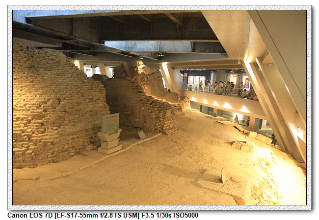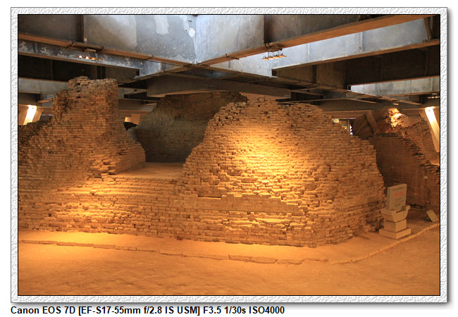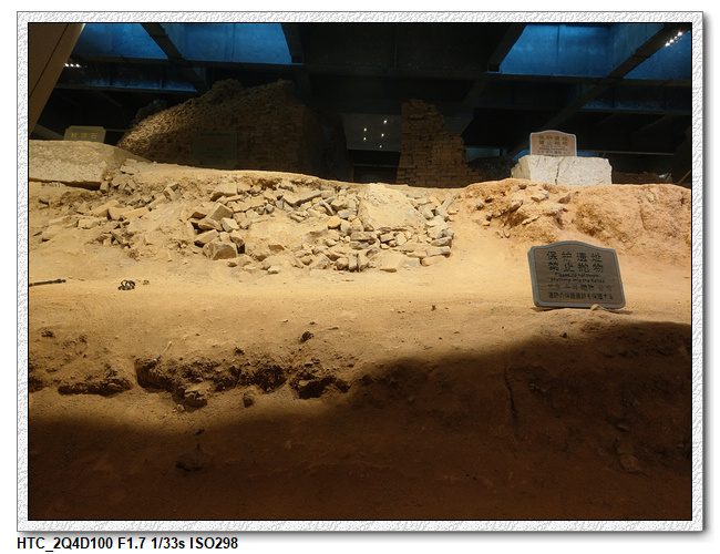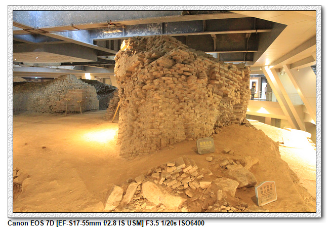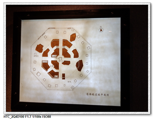 一、地下一樓舊址遺跡︰昔日雷峰塔的黃土、磚塊與殘基,出土了77件古文物的塔心室(地宮)隱約可見。