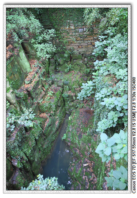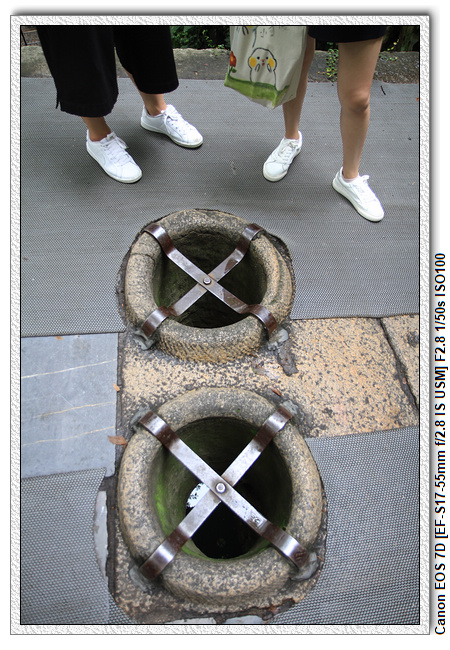 ▼【 劍池上方的石橋,兩個孔洞;雙吊桶】