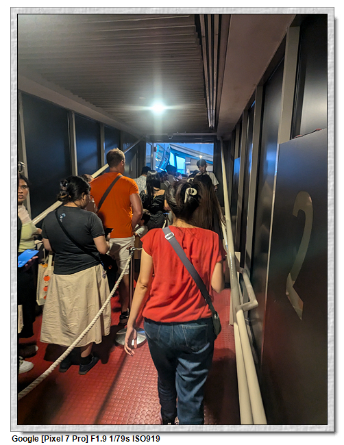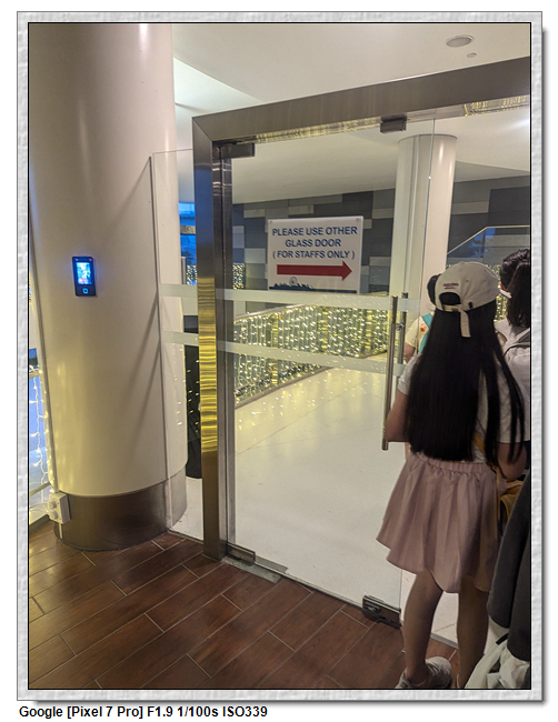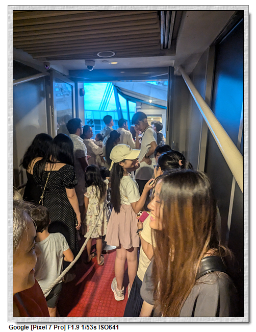 一開始在入口時,詢問服務員乘坐的問題,服務員看到我們手上一包食物(剛剛餐廳的炸物沒吃完,外帶),就先請我們把食物寄放在寄物櫃,看了一下寄物櫃的價格,覺得有點高,我們就先偷偷塞進背包裡, 之後再回到入口處,結果服務員看了一下我們的票,就說我們要先前往VIP室。