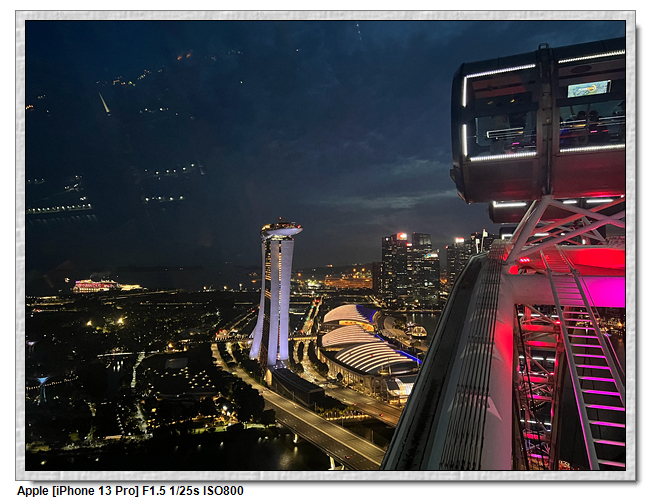新加坡摩天觀景輪,42層樓高,輪體直徑達150米,安置在3層的休閒購物中心樓上,總高度達到165米。28個安裝了空調的座艙可以分別容納28名乘客。摩天輪旋轉一周約用30分鐘時間。