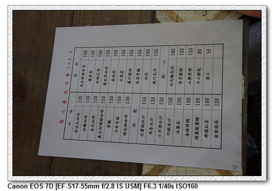【餐點價目】