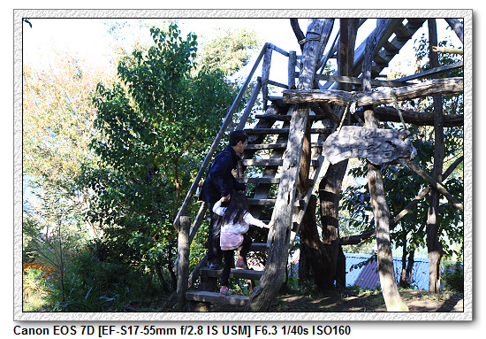往巨木群路上有個瞭望台,小羽看到一直說要爬上去,第一次小羽媽帶小羽爬上去後,又哇哇叫說好高好高。後來換小羽爸帶小羽上去,又覺得很好玩,那到底是怕高還是好玩?