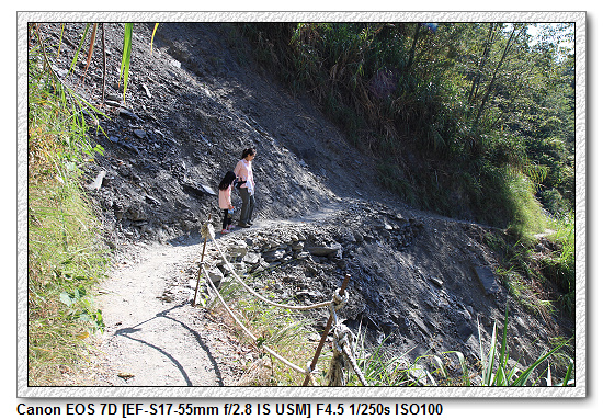 【回程時,遇到落石封路,前方三位年輕人是騎鐵馬上司庫】