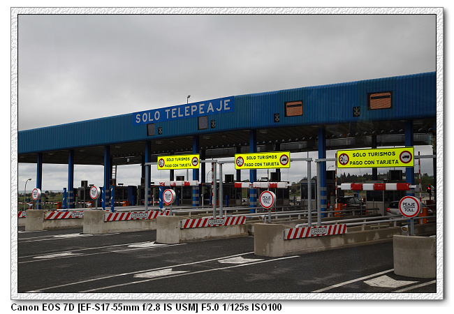 西班牙的收費站很有趣,不像台灣一樣繳了錢就可直接過去,閘道口還有桿子,車子都會先等在那,旁邊也個指示燈,等燈由紅轉綠時,桿子升起才可過。至於在等什麼,我就不知了。明明前方就沒車子,就看到一排車等在那。