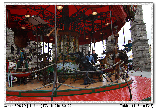 跟一般的旋轉木馬相同,會旋轉跟上下移動,不過造型卻不是木馬,而是怪物。這應該是某個童話的主題,只是不太了解。我們還偷偷停留在這好幾次,看好多小孩在玩,其實還蠻想坐的~~~