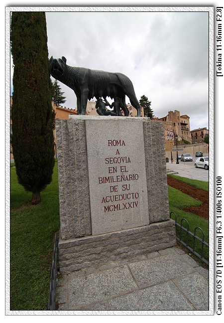 相傳羅馬人的祖先不明緣故被棄於深山中,後來被母狼發現,覺得沒啥攻擊力,就丟給小狼們當食物,沒想到小狼們不但沒吃掉,反而還玩在一起,之後更進而與小狼們一樣喝母狼母水。這個紀念碑就是紀念是兩個被母狼哺育成人的羅馬兄弟,長大後他們就在被母狼養育的地點建立羅馬城。這裡以前也是羅馬人的領地,所以才有這個紀念碑。