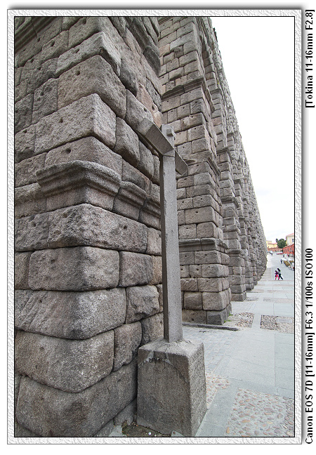 水道橋近看可見石柱並不是平整,而是佈滿一顆顆小洞。這並不是內戰時的遺跡,而是當時羅馬人為了搬運石塊所鑿出的小洞,小洞並不深,可稍微插入木棍以增加抓力。