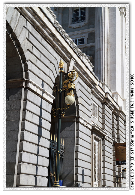 加冕廳-這裡像是凡爾賽宮的鏡廳,有很多鏡子,有增加視覺空間的效果。而鏡子四周則是用銀線所製作的雕飾(看起來黑黑的,銀氧化了~)。這裡也有漂亮的水晶燈,不過是made in 威尼斯。加冕廳廳起來就是國王加冕的地方,沒錯,現任西班牙國王胡安卡洛斯ㄧ世1975年在這加冕登基。而加冕椅只伺候一代,下一任國王就會換椅子。現在大多用來國王接見重要外賓的地方。不過整個王宮已經被當作觀光資源,因此國王也很少在這裡接見外賓,除非有相當重要的目的,不過大多只是給媒體拍拍照,之後就會移往他處。不然封宮太久,遊客會罵。