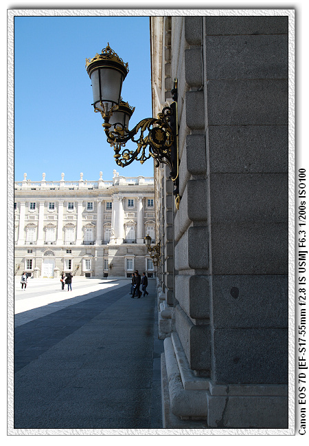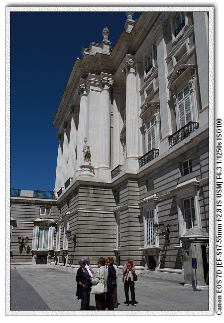 馬德里王宮有小凡爾賽宮之稱,裡面一共有2000多的房間,目前只展示20個房間參觀。馬德里王宮原建於18世紀,1560年西班牙選馬德里為首都,原本王宮為木造,而後不小心被伙夫給燒了。因此在1738年原址重建。胡安卡洛斯ㄧ世即位之後,將這座大型建築與人民共享,皇室家族則低調住在馬德里附近的郊區,只有舉行重要公開儀式才會出現在這。