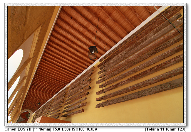 ▼【這些掛在迴廊上方的的木頭,是修復時被替換,每根都有1200的年紀】