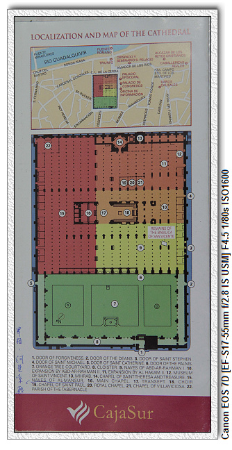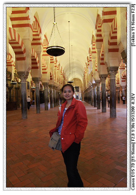 回教的清真寺並不是封閉式,也就是說這裡原本是像涼亭式,是與外頭廣場相通,大家可以隨意進出;男士在涼亭內,女士則在涼亭外(女生不准進寺內)。為了讓大家都可以聽到佈道,所以才蓋成涼亭式,如果封起來,外面的人就聽不到了。後來天主教徒佔領後,為了收門票,為了做教堂,改成屋式。廣場與屋內則用格狀的牆隔離。有點搞小破壞。