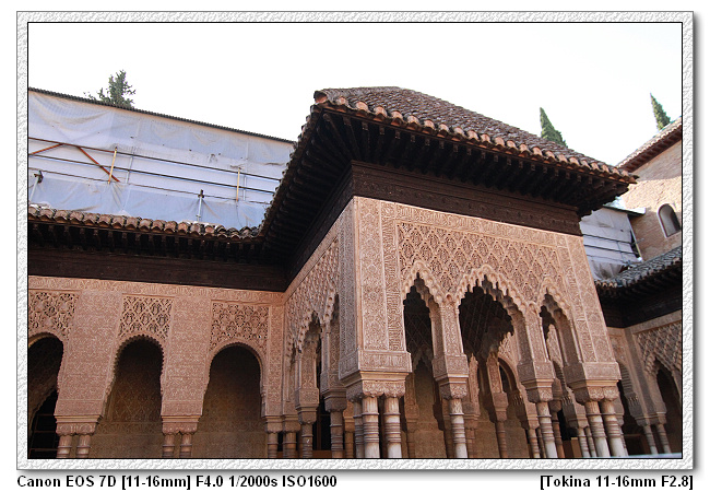獅子廳總共有124根柱子,每根柱子的柱頭都雕刻像棕櫚樹。以前回教徒是住在棕櫚樹下的帳篷,所以整個柱子與柱子之間成拱形,上面的雕刻都是為了呈現住在棕櫚樹下的感覺。