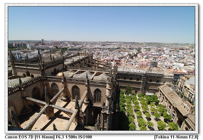 塞維亞的大教堂在摩爾人統治時期原本是一座清真寺,後來西班牙人把摩爾人趕走之後,就把原來的清真寺(西元11-13世紀所建)拆除,西元1500年改建成一座徹底展現雄偉氣勢的大教堂,只留下希拉達塔(La Giralda)。為何只留下希拉達塔,原是回教徒的叫拜樓,是這一區最高的塔,因天主教也需要一個鐘樓,所以留下希拉達塔並改成鐘樓。