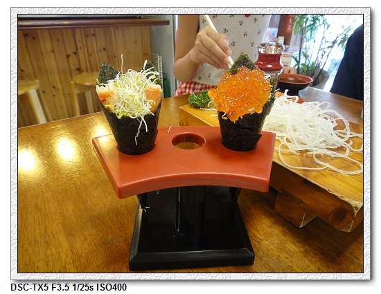 這家的鮮蝦握壽司不得小羽緣,因為小羽吃習慣了爭鮮的握壽司,而這家的飯偏黏,小羽爸覺得還不錯,至少生魚片及手卷很好吃。不過下次要來,要考慮一下用餐時間,因為輪到我們之後,就沒看到有人進來。