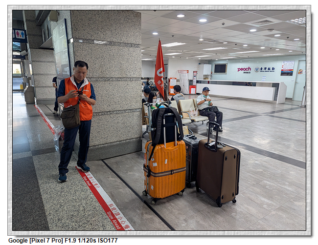今天是出發日,06:40集合。開老爸的車去小港機場附近的大程停車場,使用信用卡的免費停車,不用預約,直接開進去。大程停車場是平面停車場,開進去後自己找停車位停車,車鑰匙自己帶走,跟桃園的停車塔要預約、要留車鑰匙不太一樣。