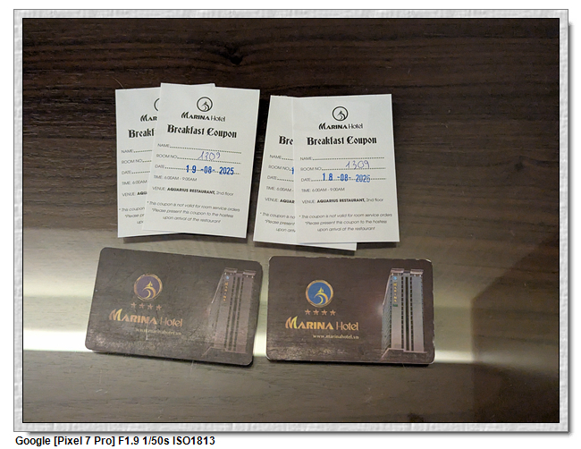 HA LONG MARINA HOTEL Aug 17, 2025 by tkchou 住宿酒店離晚餐地點很近,不到100公尺,幾乎就在隔壁,但因晚餐後開始下雨,跟團的好處是不會讓遊客淋到雨,所以就上遊覽車到酒店。 ▼【住宿的酒店】 ▼【房號1309】 ▼【房間內部】 ▼【浴室】 ▼【衛生紙超厚,有四層】 ▼【房卡及早餐券】 ▼【窗外,還下著雨】 ▼【這家的插頭,可以不用轉接頭】 ▼【今日航跡】 Back to Top