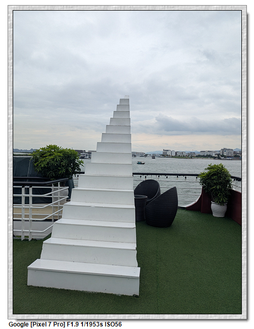 遊艇由3層寬敞典雅的樓層組成,配備各種高級設施。一樓是豪華的餐廳空間,巨大的自助餐檯,舒適的座椅。二樓也是餐廳和酒吧空間。三樓是虛擬checkin的露台區,每個角落都美輪美奐。