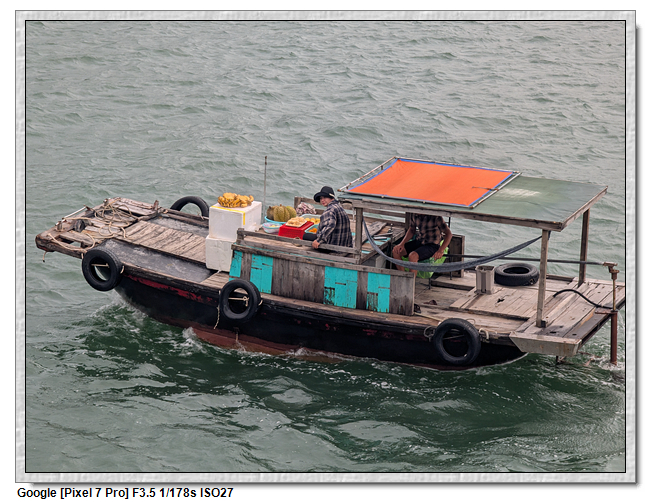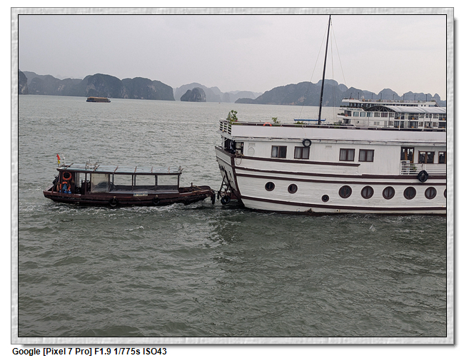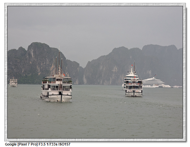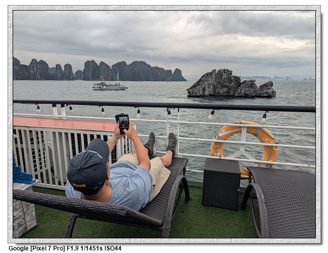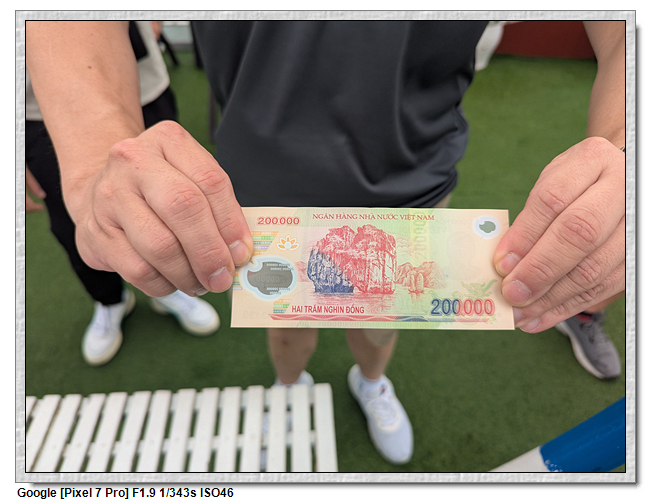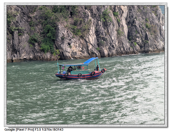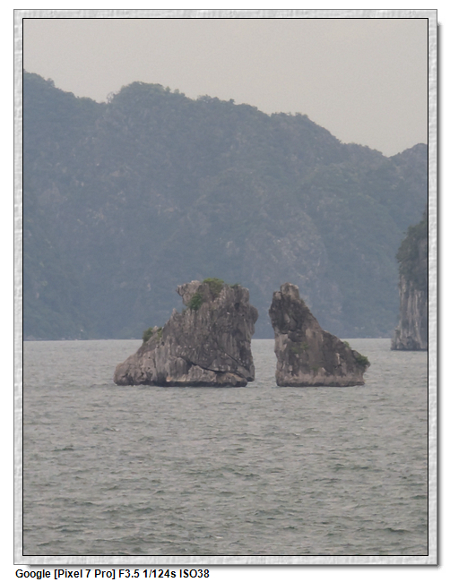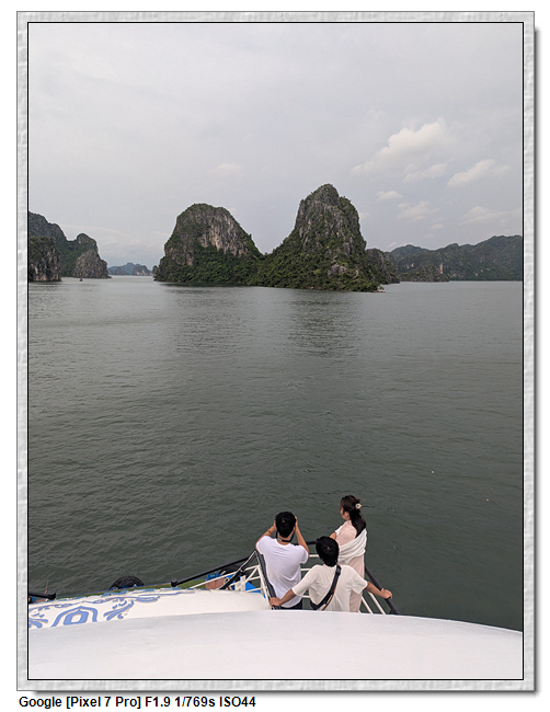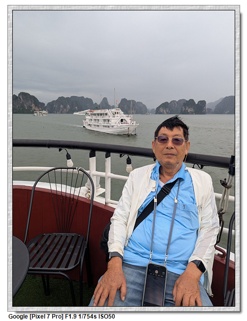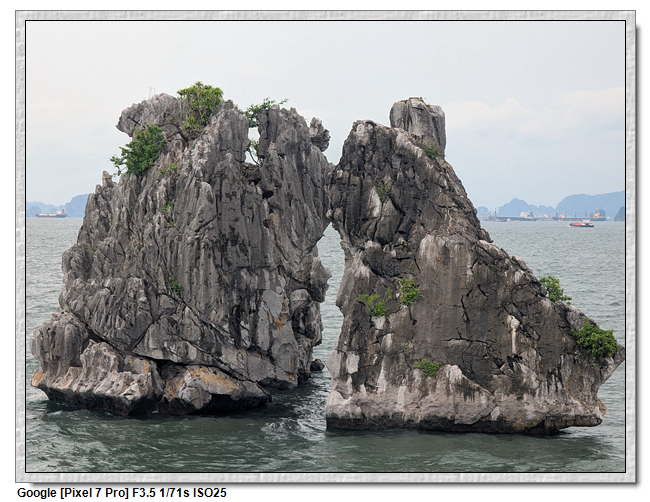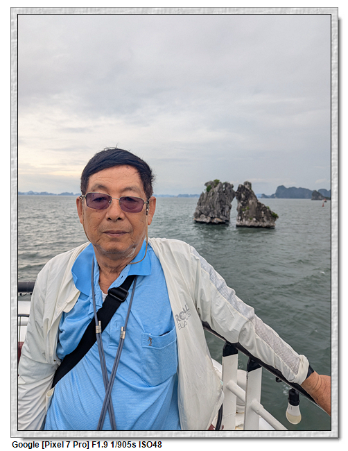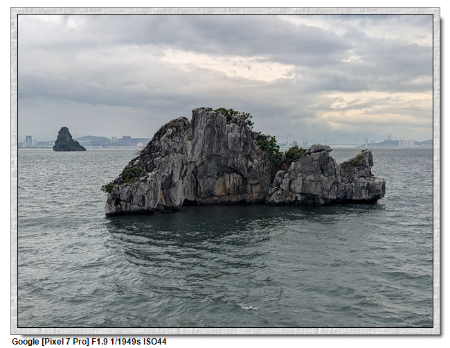 航行到中途,導遊突然拿出一張20萬紙鈔,並指著前方的一塊單獨矗立仔海上的石頭,說這是紙鈔上的圖案。當然大家身上並沒有20萬紙鈔,只好搶拿導遊的紙鈔拍照。後來不知從哪裡生出一片20萬的大型紙板。