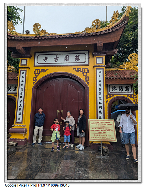 鎮國寺,坐落於西湖 (Hồ Tây) 的一座小島上,是全越南最古老的寺,建於541年之間,有1500年歷史。寺內佛、道皆奉,以佛教為主,供有:臥佛、千⼿觀⾳、彌勒佛、指天地佛。