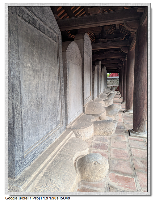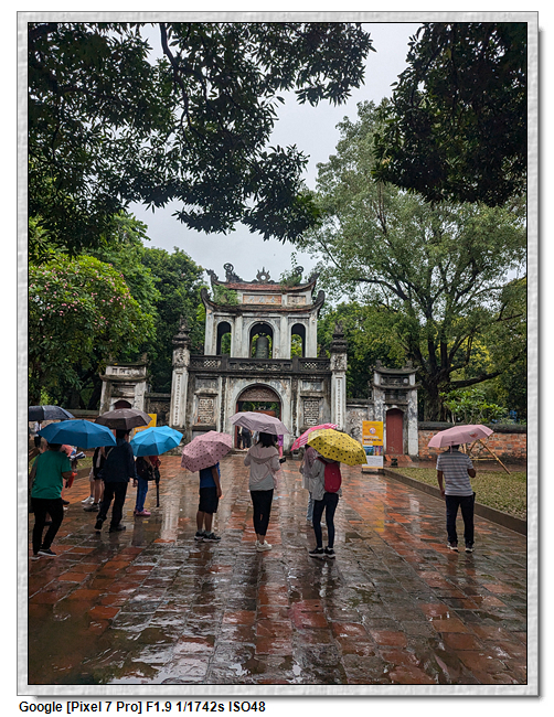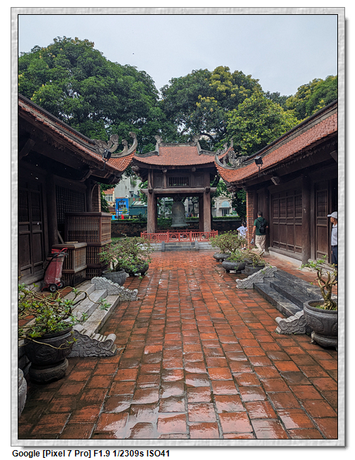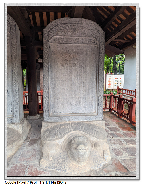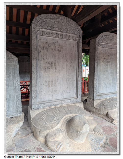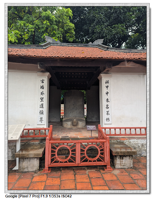 過奎文閣就是第三庭院。院內有一大方型天光井(方型蓮池)。兩側各一座進士坊,因為越南歷來沒有狀元,所以只為進士刻立石碑,坊內立有82塊進士石碑,每坊各41塊,形成碑林,記載了從大寶三年(1442年)至景興四十年(1779年)337年間的82屆科舉考中的1306名進士的姓名與籍貫。