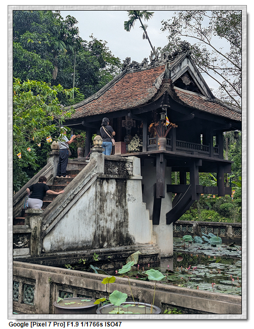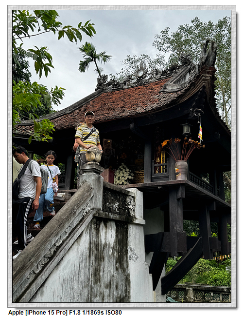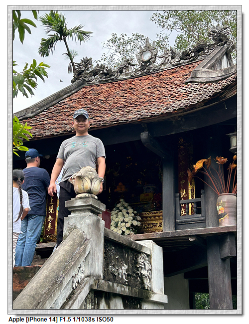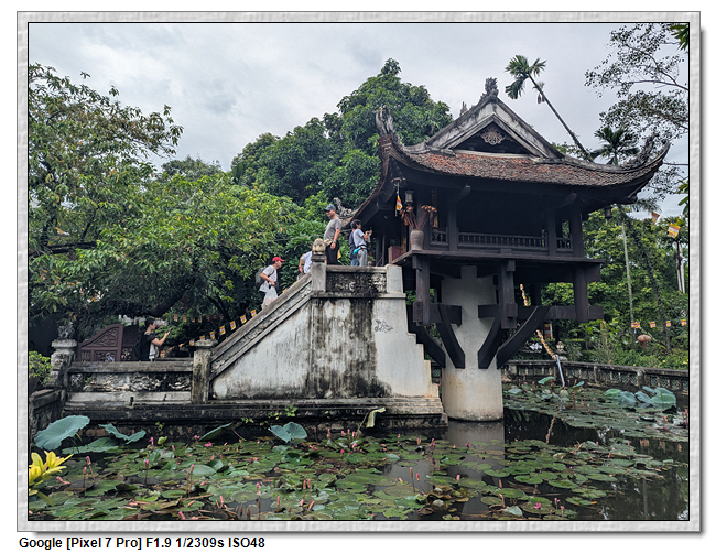 一柱廟是河內地標,此祠廟建於⼀根柱⼦之上造型獨特外型雖⼩,但卻是越南的代表古剎,⽽寺廟立在蓮花池中的優雅姿態,是李朝皇帝於1049年所建。廟⾝為⽊造,矗立於⽔中⼀根直徑有1.25公尺的⽯柱上,狀如蓮花。是奉祀觀世⾳菩薩的廟宇, 據說是李朝皇帝因膝下無⼦,於是求神賜⼦,某夜夢⾒觀世⾳菩薩坐在蓮花座上,⼿抱⼀⼦賜予他,不久果得⼀⼦。皇帝便建此廟供奉觀世⾳菩薩,以感謝神恩。如今是許多越南婦女前來上香祈求⼦嗣的廟宇,香火鼎盛。