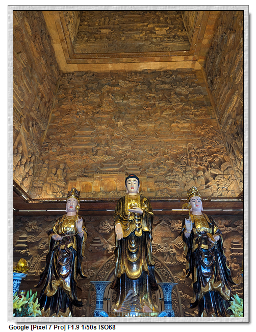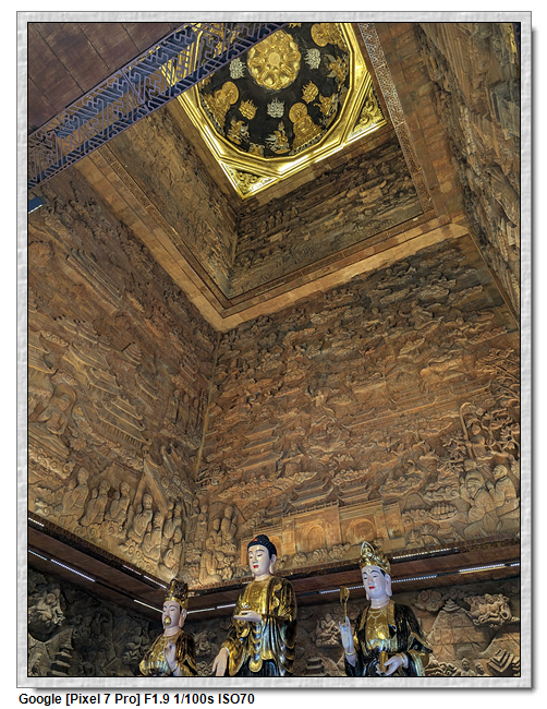 ▼【廟塔內供奉三座神像,聳立的塔壁上刻滿了壁畫】