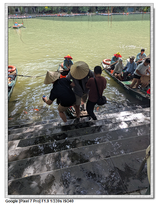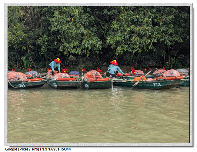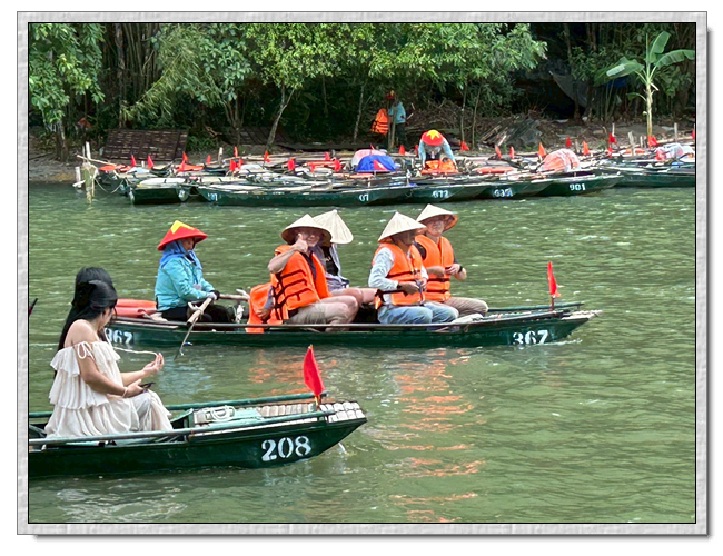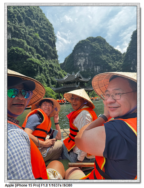 回程時,團友們紛紛好奇船伕的薪水,小武說,船票一人是25萬越南盾,船伕是有底薪的,一個月是200萬越南盾,跑一趟船津貼是15萬越南盾,加上小費約8萬越南盾,所以一趟船至少可拿23萬越南盾。